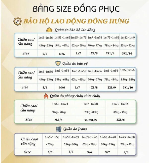 KÍCH CỠ QUẦN ÁO BẢO HỘ LAO ĐỘNG