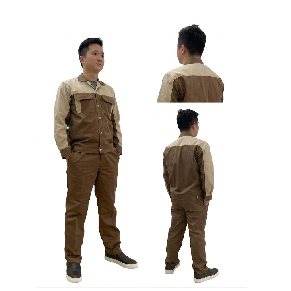 – Phối màu chuẩn nhận diện thương hiệu: Sự kết hợp giữa tông màu Nâu đất và Kem Be không chỉ mang lại vẻ ngoài sang trọng, hiện đại cho kỹ sư mà còn có tác dụng “giấu bẩn” cực kỳ hiệu quả, giúp bộ đồ luôn trông sạch sẽ, chuyên nghiệp suốt cả ngày dài.